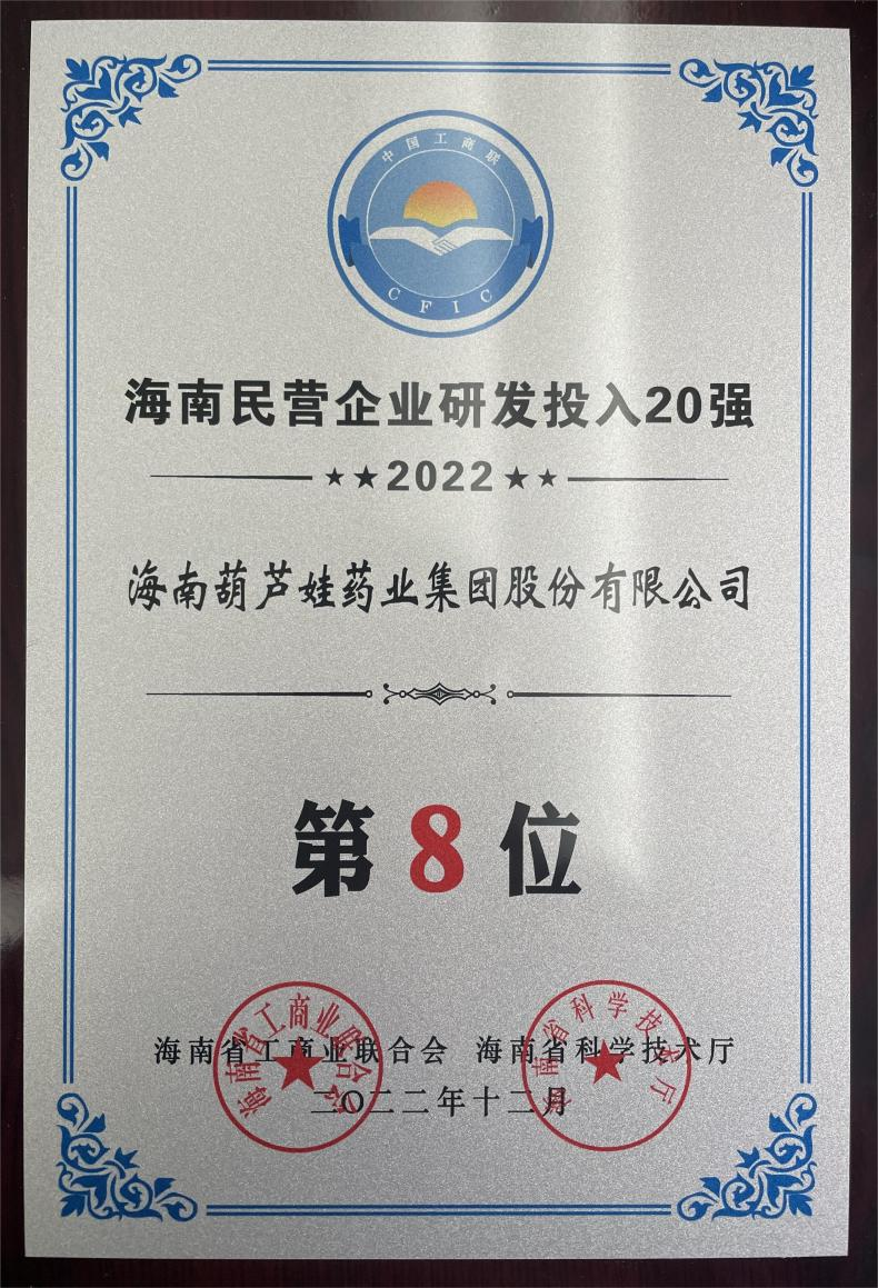 12月23日,2022海南民营企业50强和研发投入20强发布会在海口举行。会上发布了“2022海南民营企业50强”“2022海南民营企业研发投入20强”榜单和分析报告。尊龙·Z6药业再次荣登两榜,在海南民营企业50强榜单中位列第25位,较去年上升8位,这也是公司连续三年登榜;在海南民营企业研发投入20强中位列第8位,较去年上升7位。